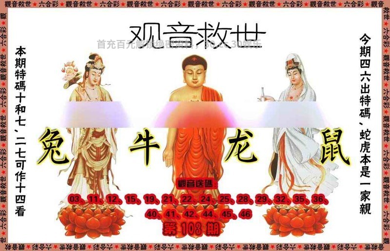 108期:特码王中王/地下绝密料/澳门葡京/特码暗语/曾道人救世心